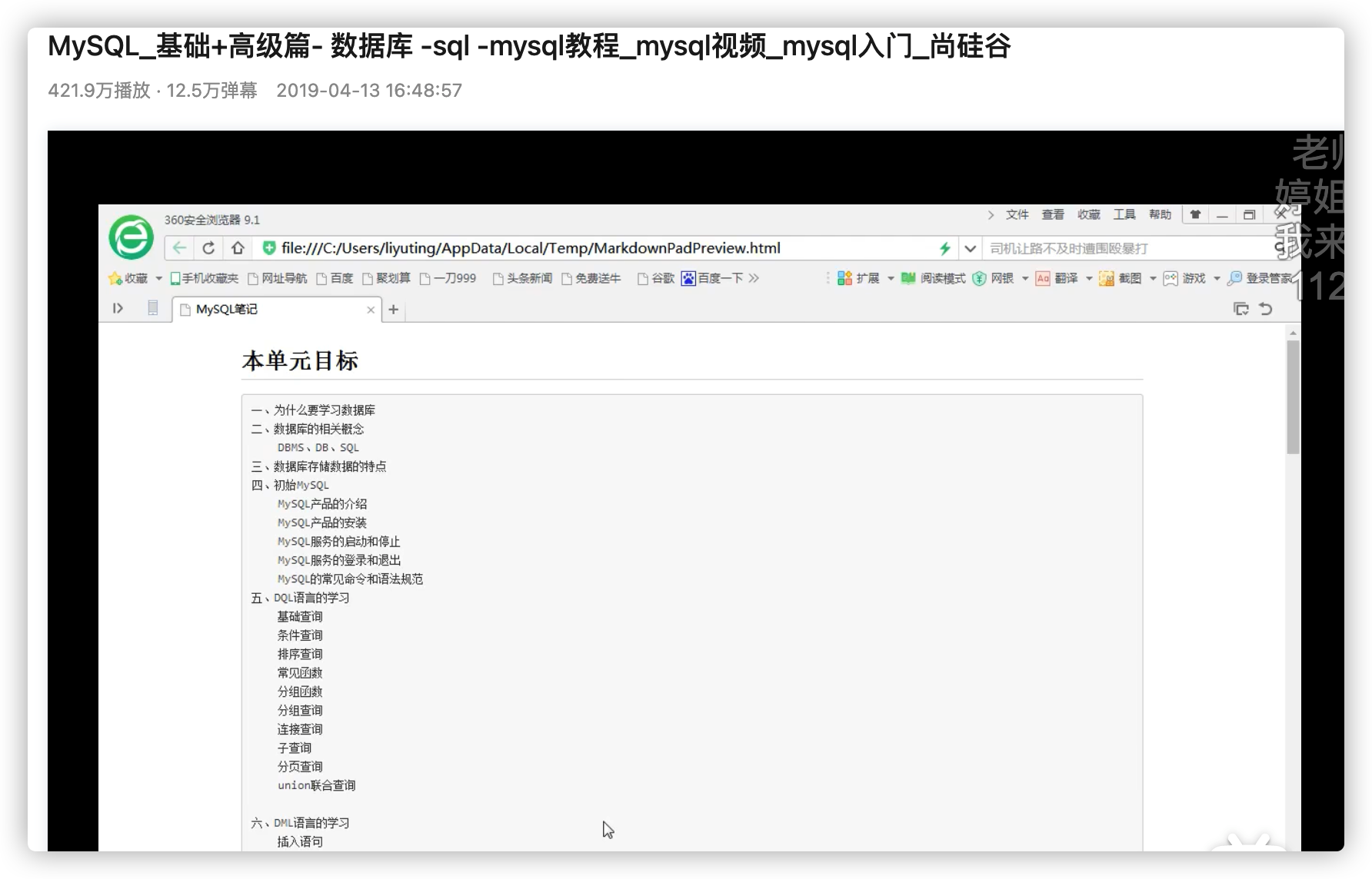 # 1、尚硅谷的MySQ入门视频 + 高级篇