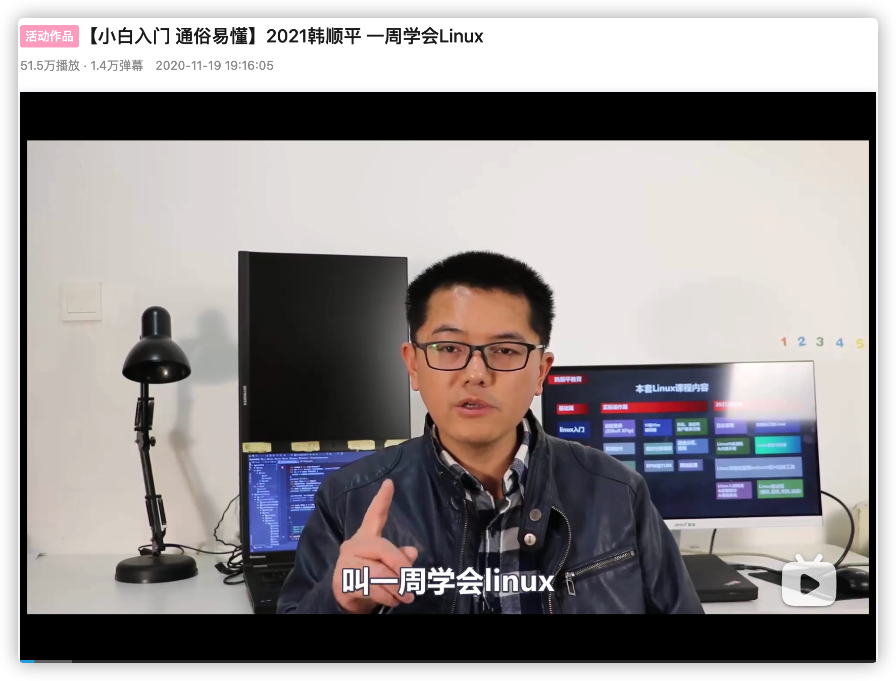其实有很多小伙伴都让我推荐 Linux视频,老实说我是没怎么系统看过Linux视频的。