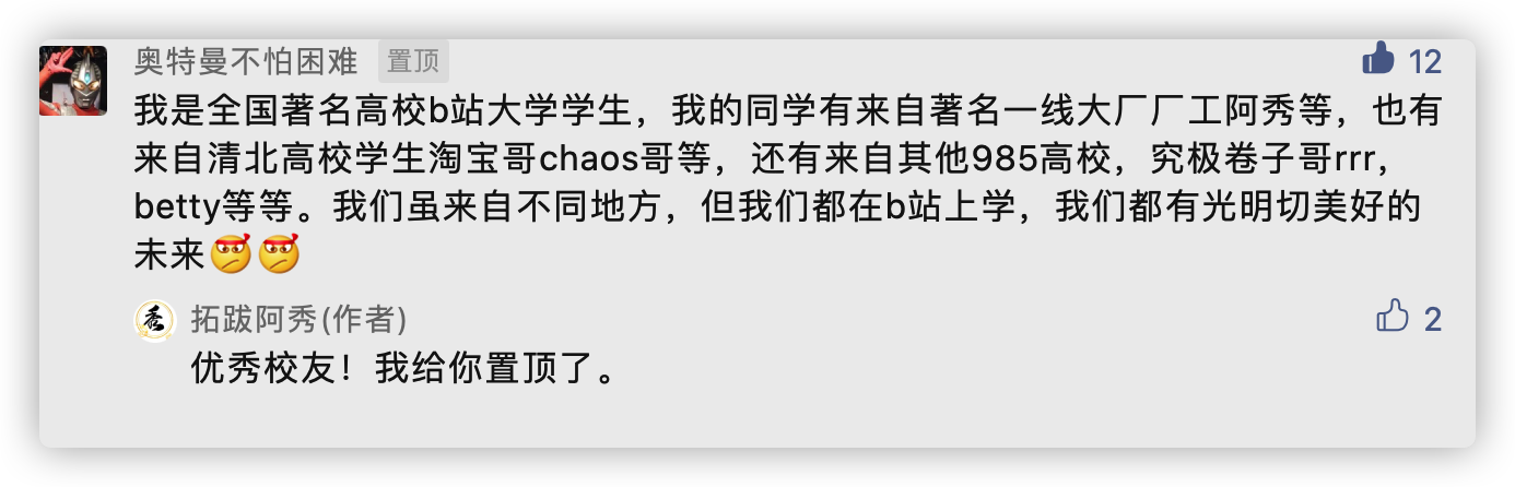 看得出来还是有不少B站大学的校友的,哈哈哈