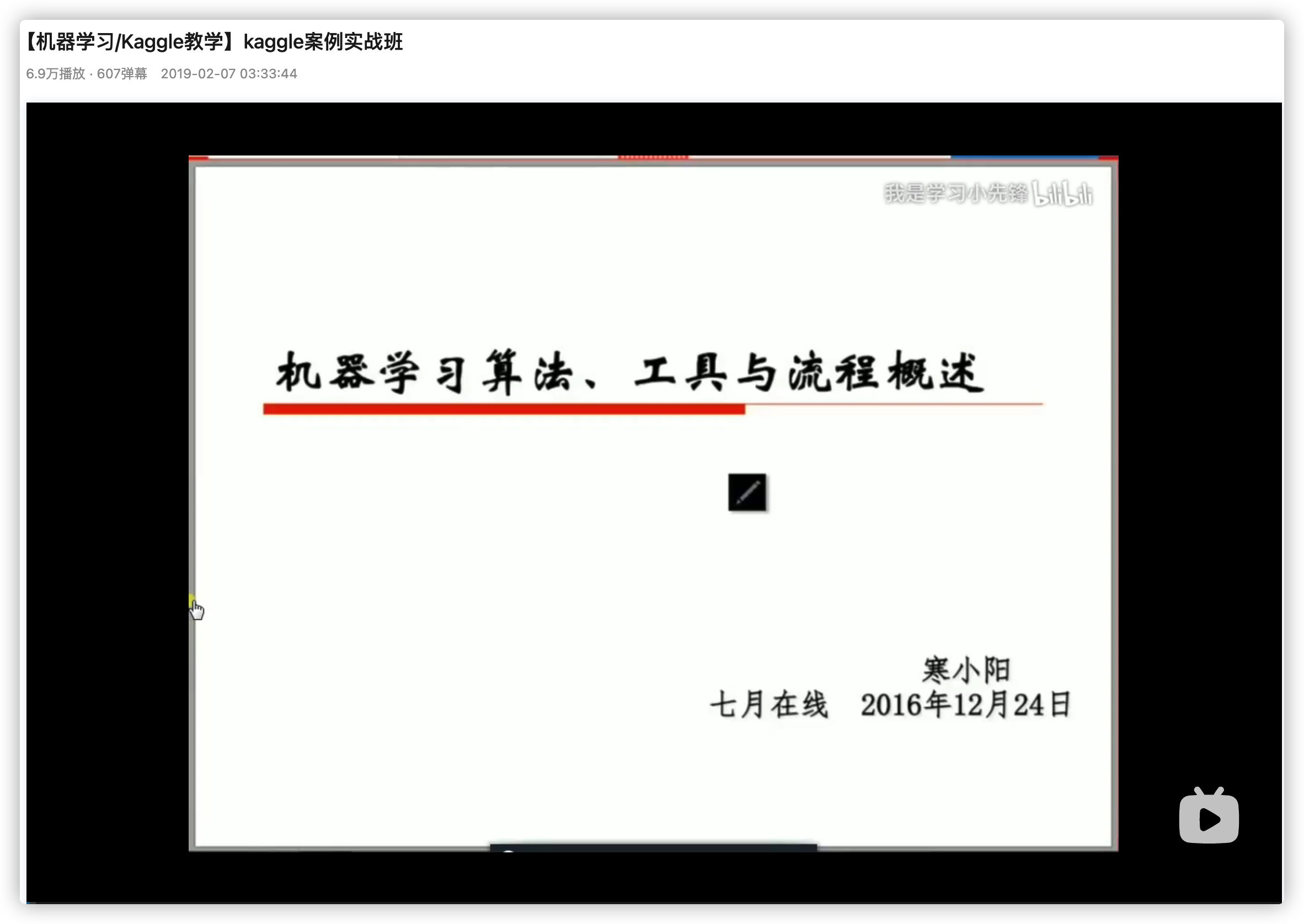 这个视频是B站少有的几个不错的Kaggle实战视频了,推荐有算法岗意向的小伙伴认真看一下这个视频,最好跟着做一遍!