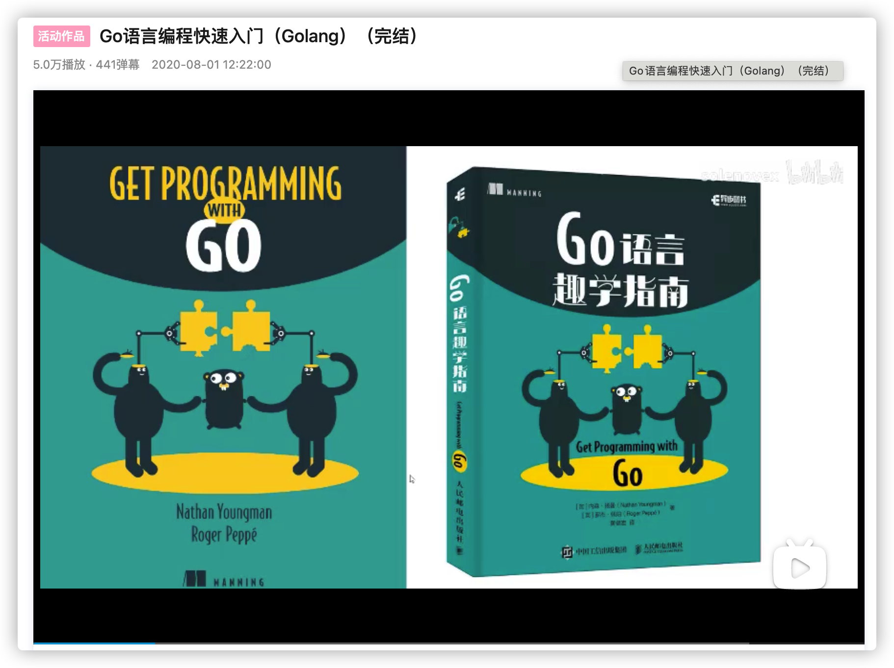 目前B站上的Go语言相关视频不多,我仔细看了一下我的Go语言收藏夹,值得推荐的确实不多。