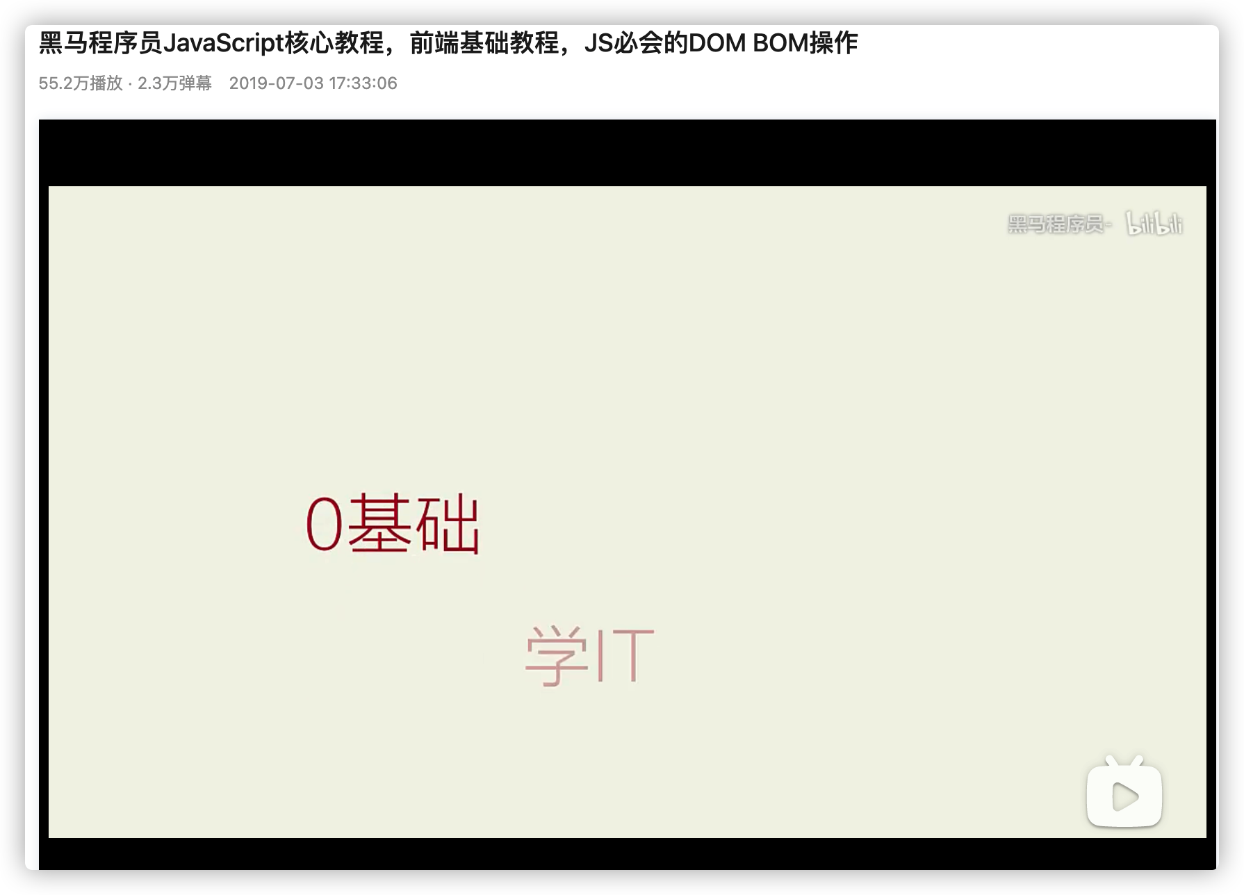 讲真,我学习编程真的就靠B站和我自己看书了,我简单统计了一下我在B站看的视频80%都是出自黑马机构。。。
