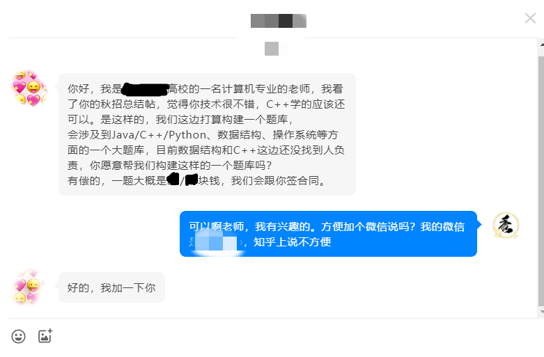 然后也有很多小伙伴帮我点赞,有一个高校老师也看到了这篇文章,他就在知乎私信我。